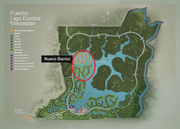 | PUERTOS /Lago Escobar | | Nueva Ciudad Pueblo de E. Costantini. | | Seguridad, tranquilidad y naturaleza con todos los servicios de una ciudad. | |
